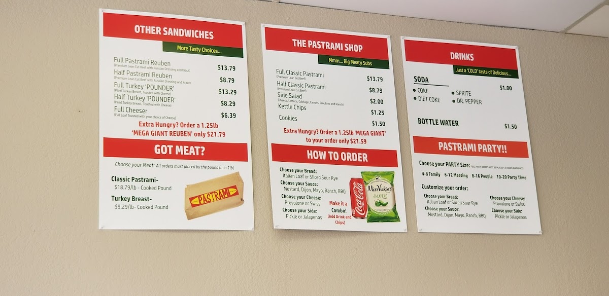 The Pastrami Shop offers a focused menu centered around hearty sandwich options, primarily featuring pastrami and other deli-style meats. The menu is organized into several key sections to cater to different dining preferences.